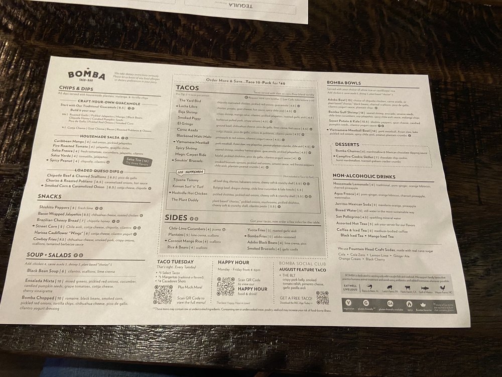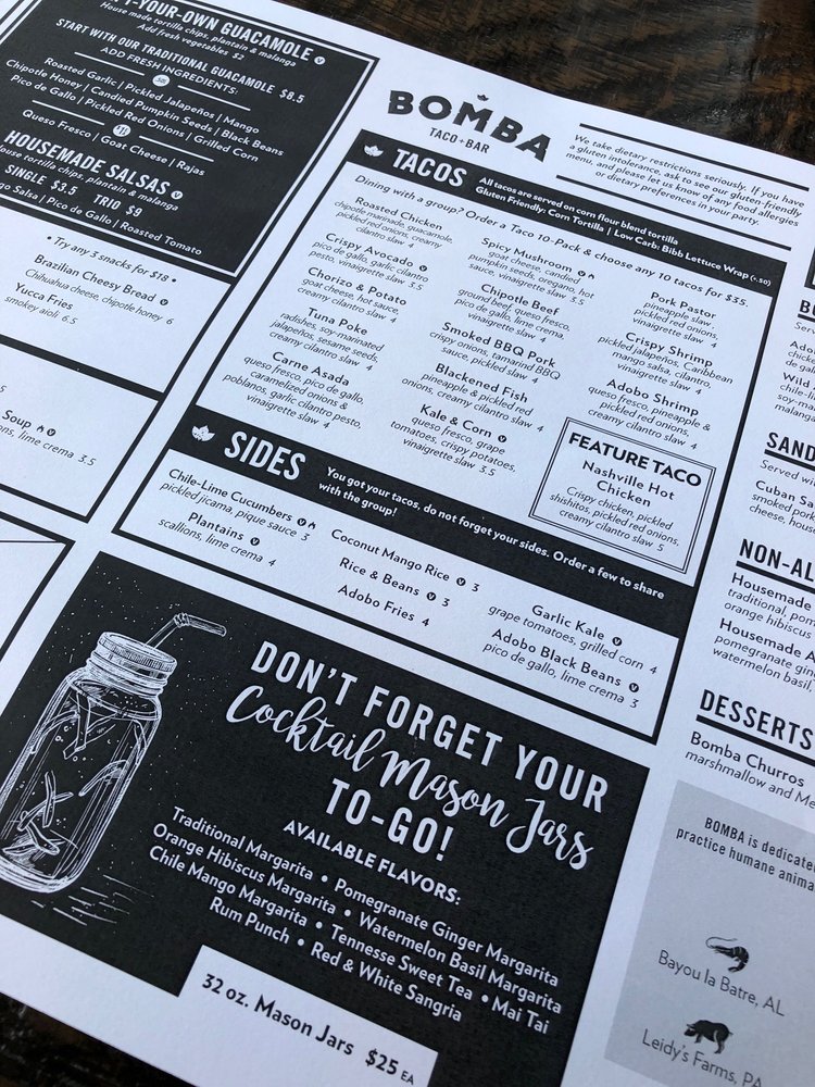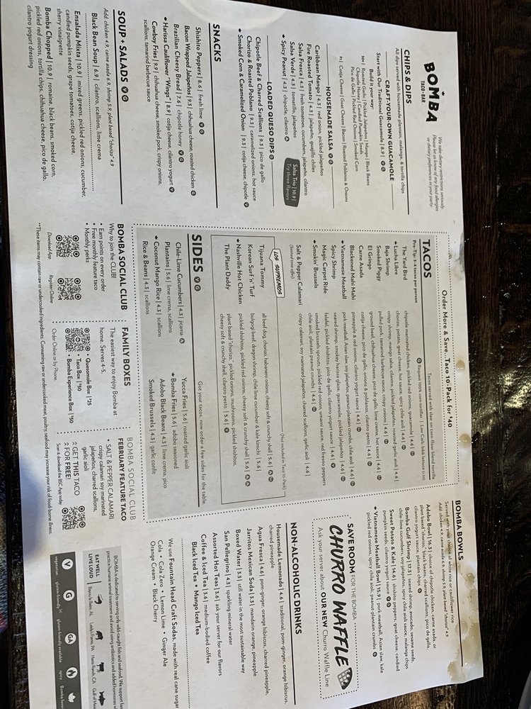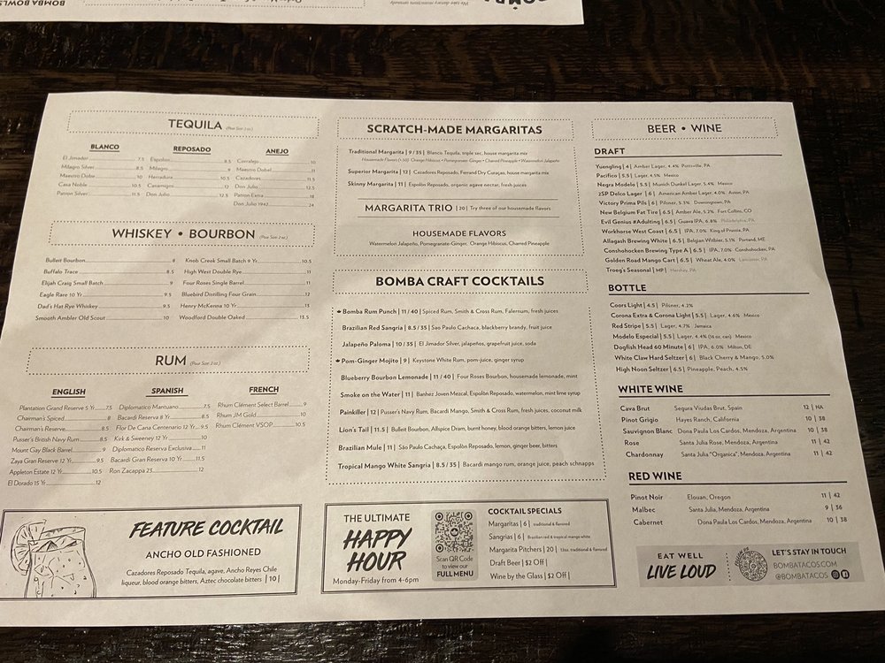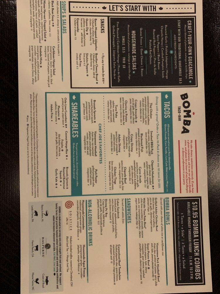 BOMBA Taco + Bar | Malvern Menu (Update 2025)
